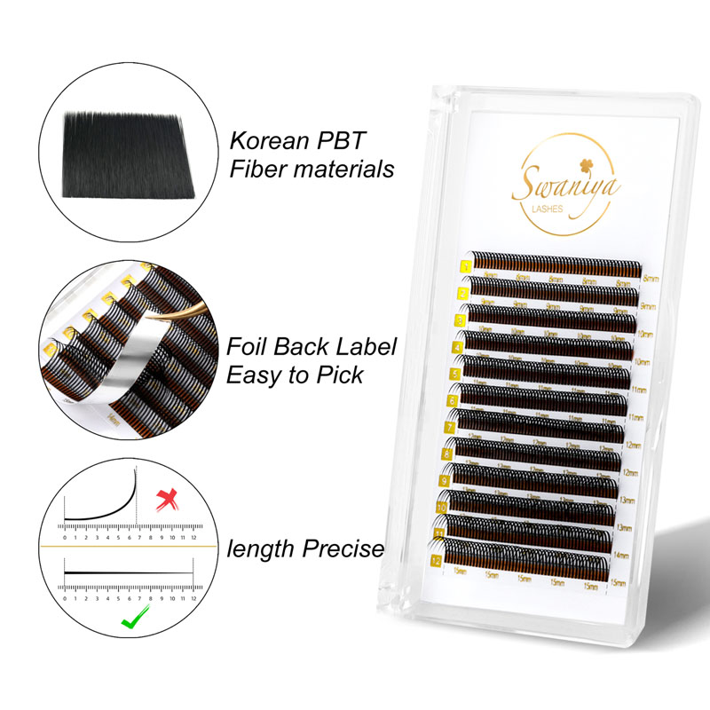Is é atá i síntí fabhraí Swaniya Wispy ná stíl síneadh fabhraí atá foirfe dóibh siúd ar mian leo cuma nádúrtha ach glamorous. Tá meascán de fhaid ag síntí fabhraí wispy, le lashes níos faide atá measctha le lashes níos giorra, níos géire. Tugann an teaglaim seo léargas gan dua, míshásta a chuireann le do áilleacht nádúrtha.